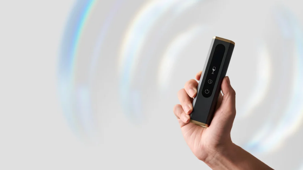 Jesse and his co-founder Jonah were both studying in London when inspiration struck. Jonah’s family background in technology provided the missing piece of the puzzle. “He thought about electromagnetic wave technology,” Jesse explains. “It’s normally used in space and 5G communication, but it gets absorbed by oxygen molecules. That’s usually a problem – but for wine aeration, it’s perfect.”